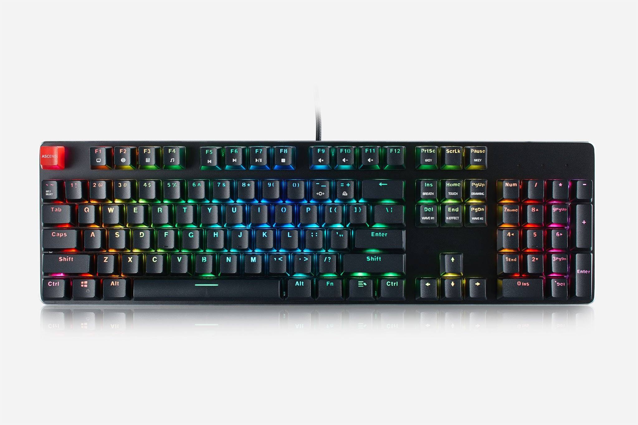 - LED Backlighting - RGB LED lights with 18 pre-installed effects and 1 slot for user-defined effect. Variable animation speeds and brightness settings.